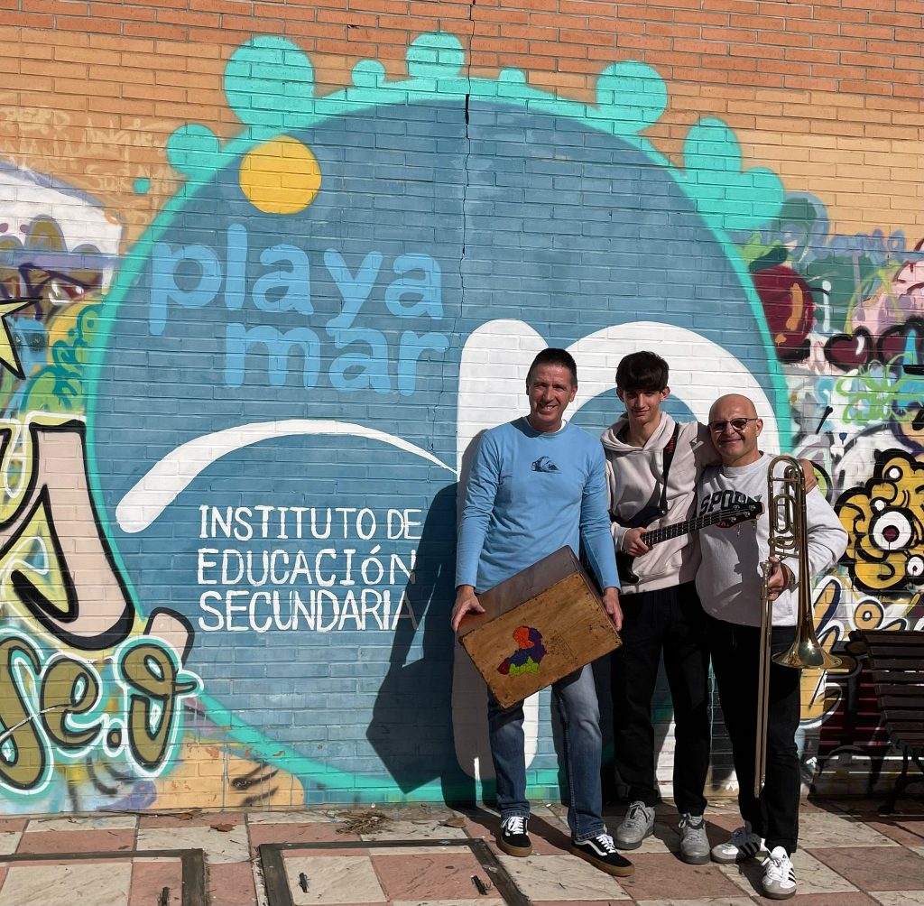 Miércoles 19: Trio de Bajo eléctrico, cajón flamenco y trombón de vara, a cargo de Carlos de 3º ESO y los dos profes José A. y Javier.