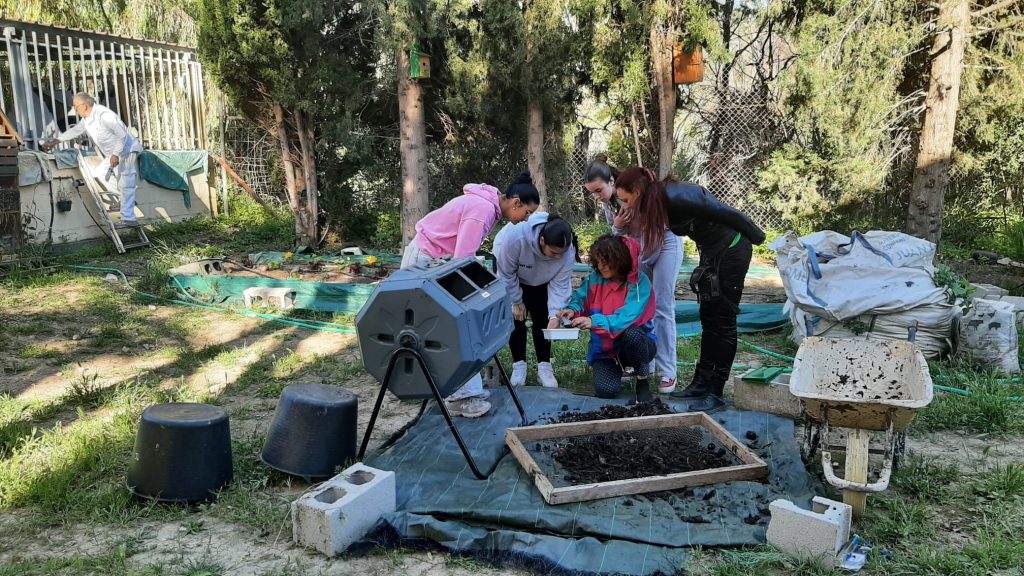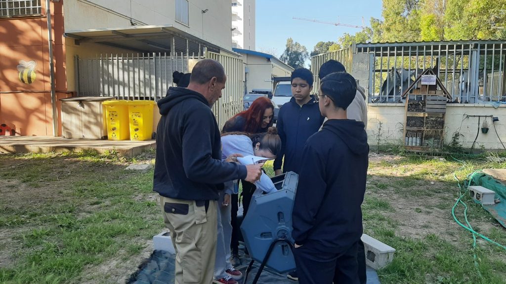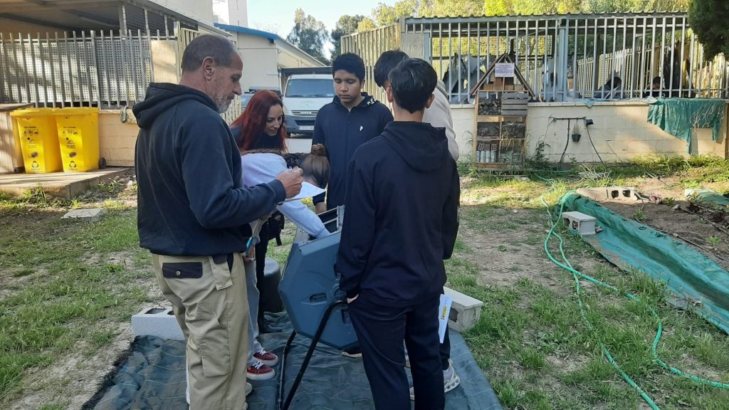 Esta tarea se encuentra dentro del proyecto Bichocompo en colaboración con la estación del Zaidín del CSIC. El alumnado del Aula Específica y de 4 ESO de Huerto Escolar y Hábitos Saludables junto a su profesor Pablo Navarro y monitores de la asociación Gusarapos han investigado el ecosistema de una compostera realizando muestreo no destructivo y estudiando a los invertebrados