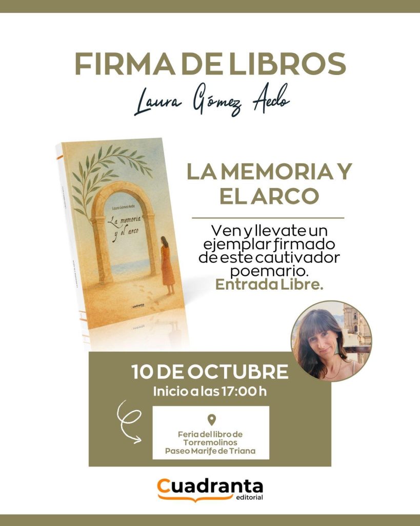 Este viernes, 10 de octubre, nuestra compañera Laura Gómez Aedo, profesora del Departamento de Lengua y Cultura Clásica del IES Playamar, participará en la Feria del Libro de Torremolinos con la firma de su nuevo poemario, La memoria y el arco, a partir de las 17:00.