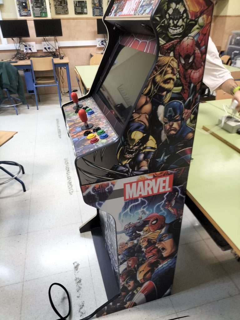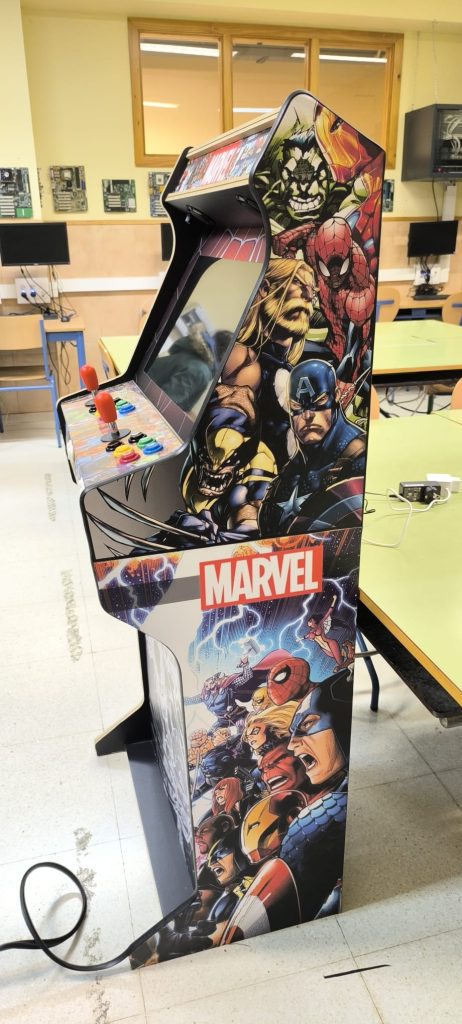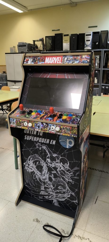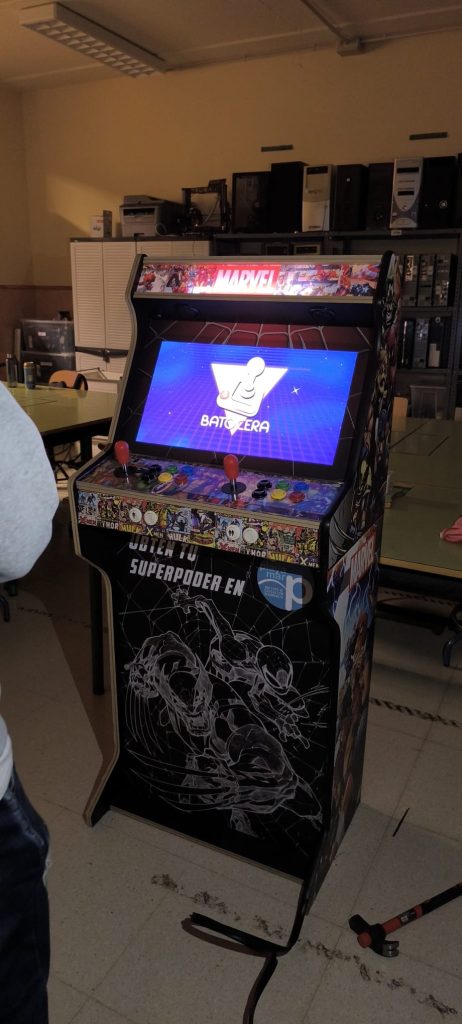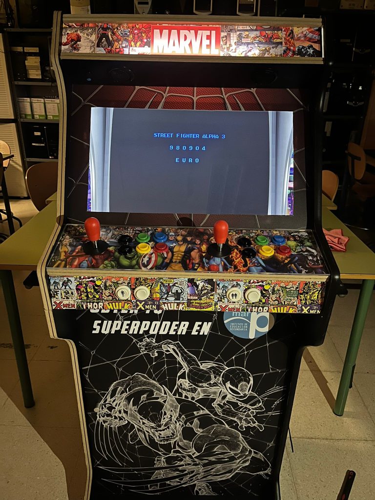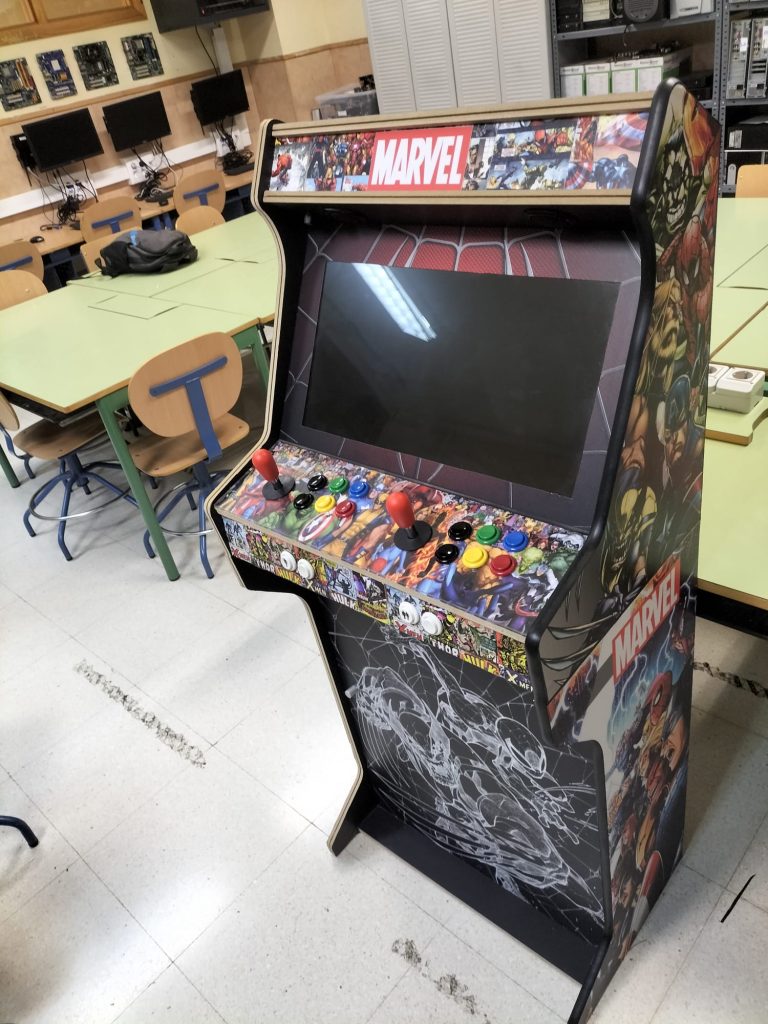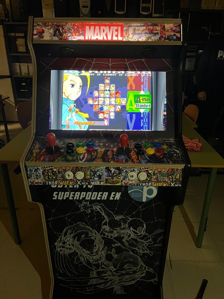 La máquina recreativa funciona a las mil maravillas, pudiendo ejecutar en pleno rendimiento multitud de juegos de «nuestra época». Gracias a nuestros alumnos, ahora podemos disfrutar de los huecos en el horario «echando una partidita».