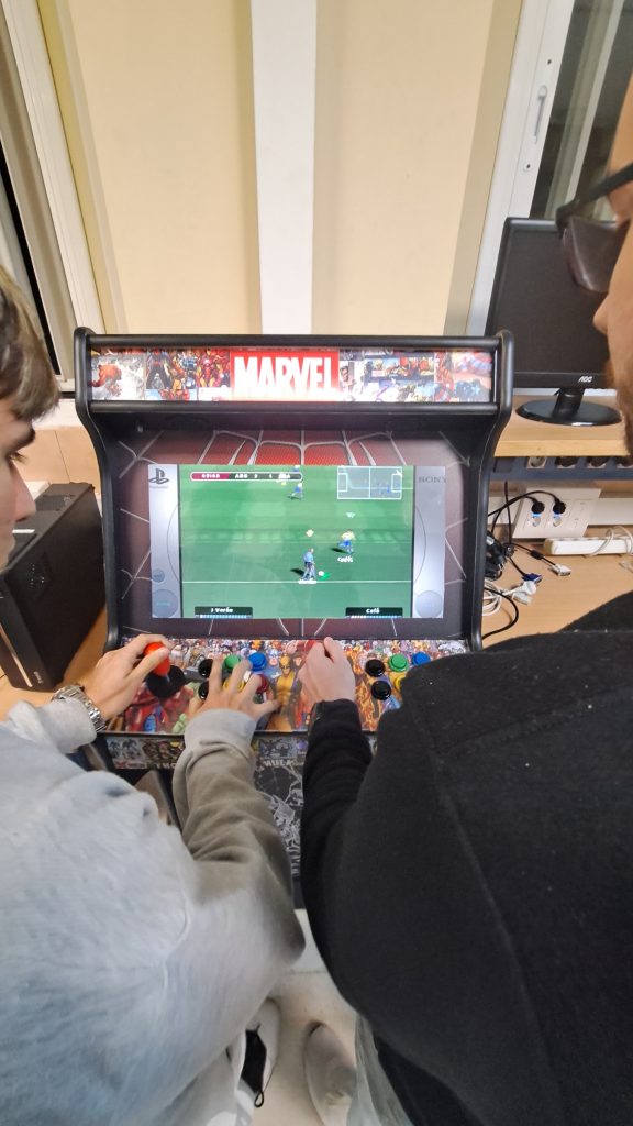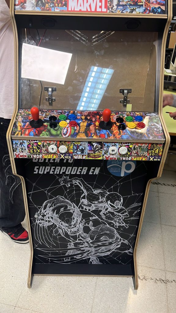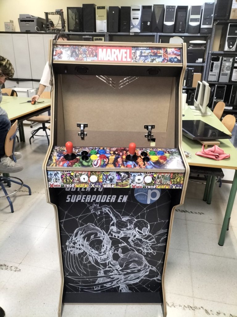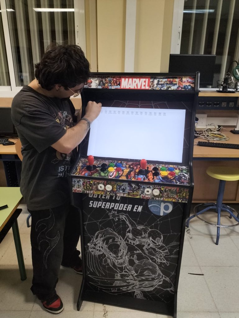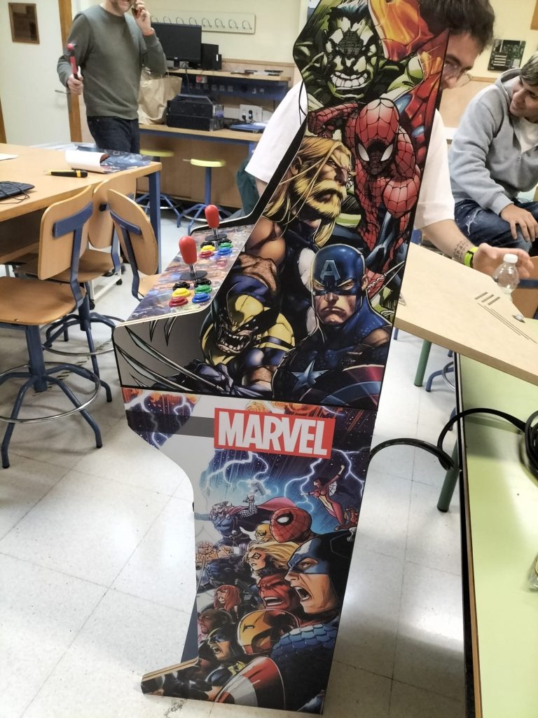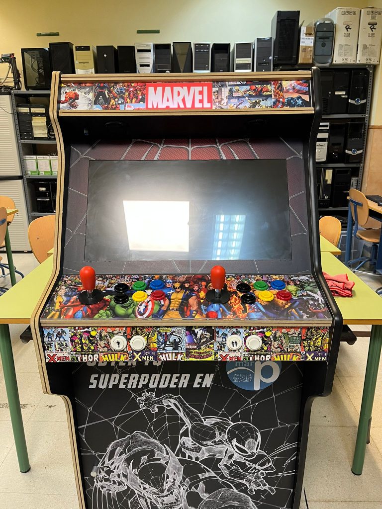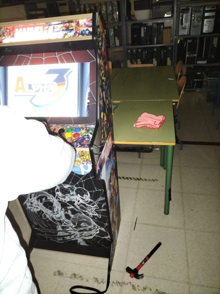 La máquina recreativa funciona a las mil maravillas, pudiendo ejecutar en pleno rendimiento multitud de juegos de «nuestra época». Gracias a nuestros alumnos, ahora podemos disfrutar de los huecos en el horario «echando una partidita».